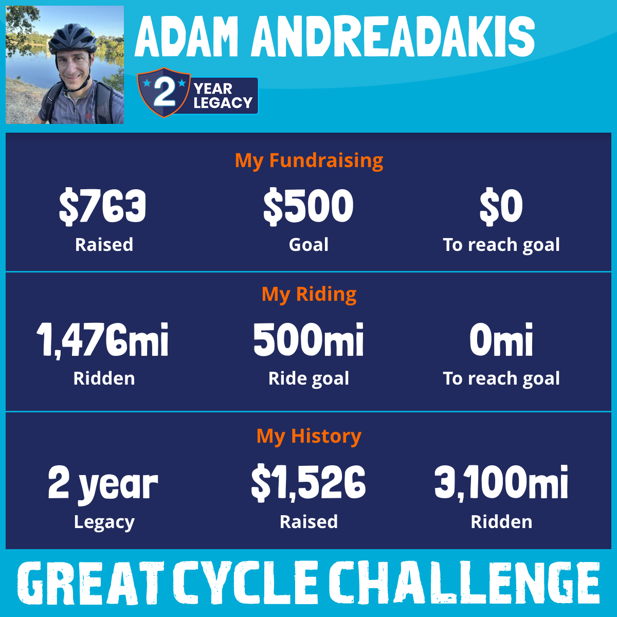 I pledge to ride 500 miles during the month of September, one mile for each dollar I hope to raise. Please support me by making a donation to give these kids the brighter futures they deserve.