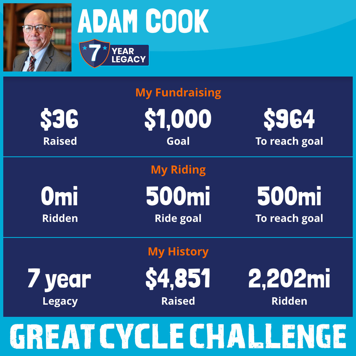 302 mi Ridden$1,007 Raised2021