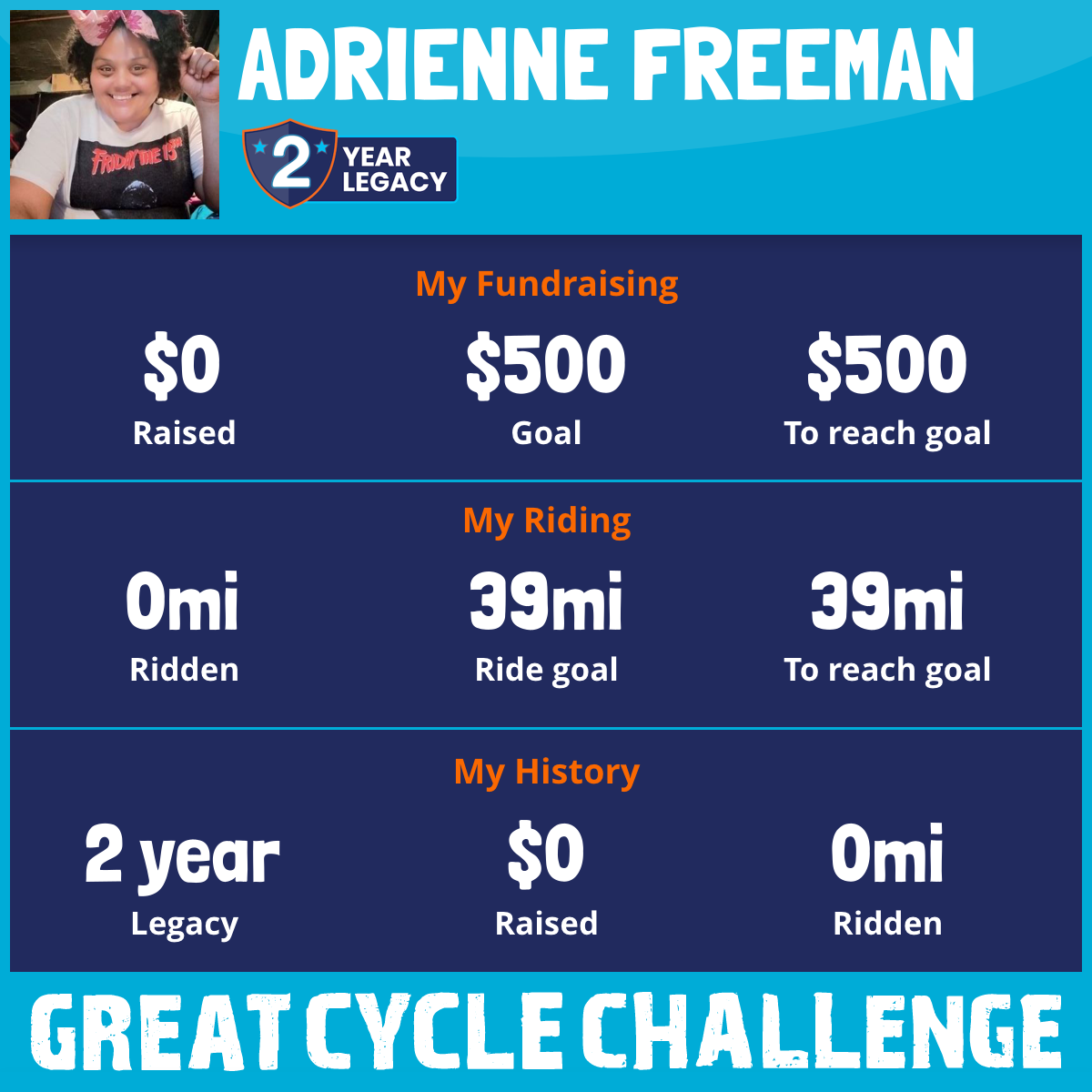 I am riding 39 mi for my friend, Candace. Please sponsor me and support my challenge to fight kids' cancer and save little lives.
