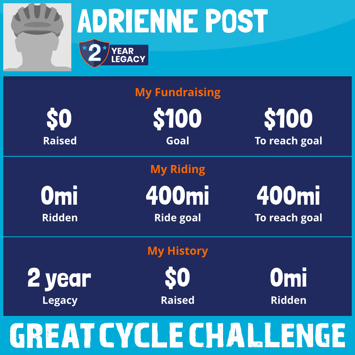 I am riding 400 mi for my mum, Dyanne. Please sponsor me and support my challenge to fight kids' cancer and save little lives.