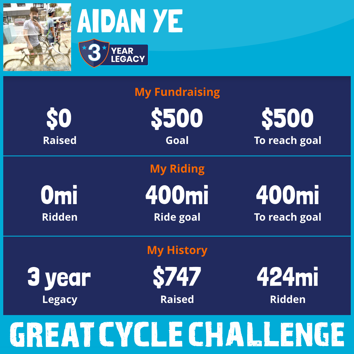For the month of September, I am participating in the Great Cycling Challenge. Please support my journey as I hope to cycle 200 miles in the span of 1 month. The money I raise will go towards kids with cancer.