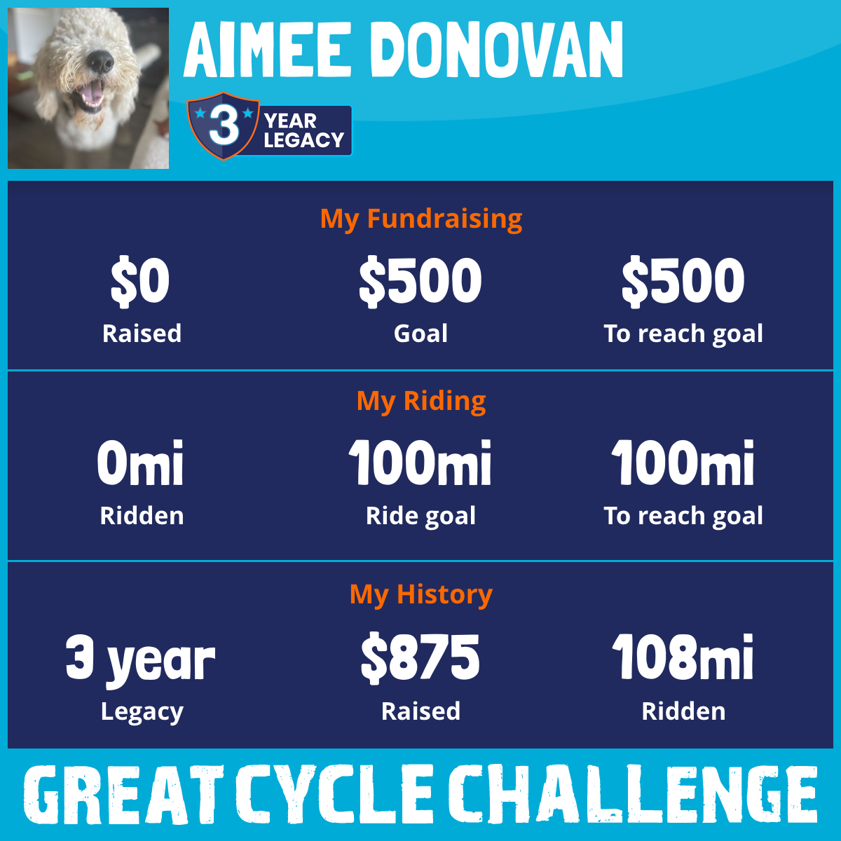I am riding 100 mi in memory of Michael Donovan. Please sponsor me and support my challenge to fight kids' cancer and save little lives.