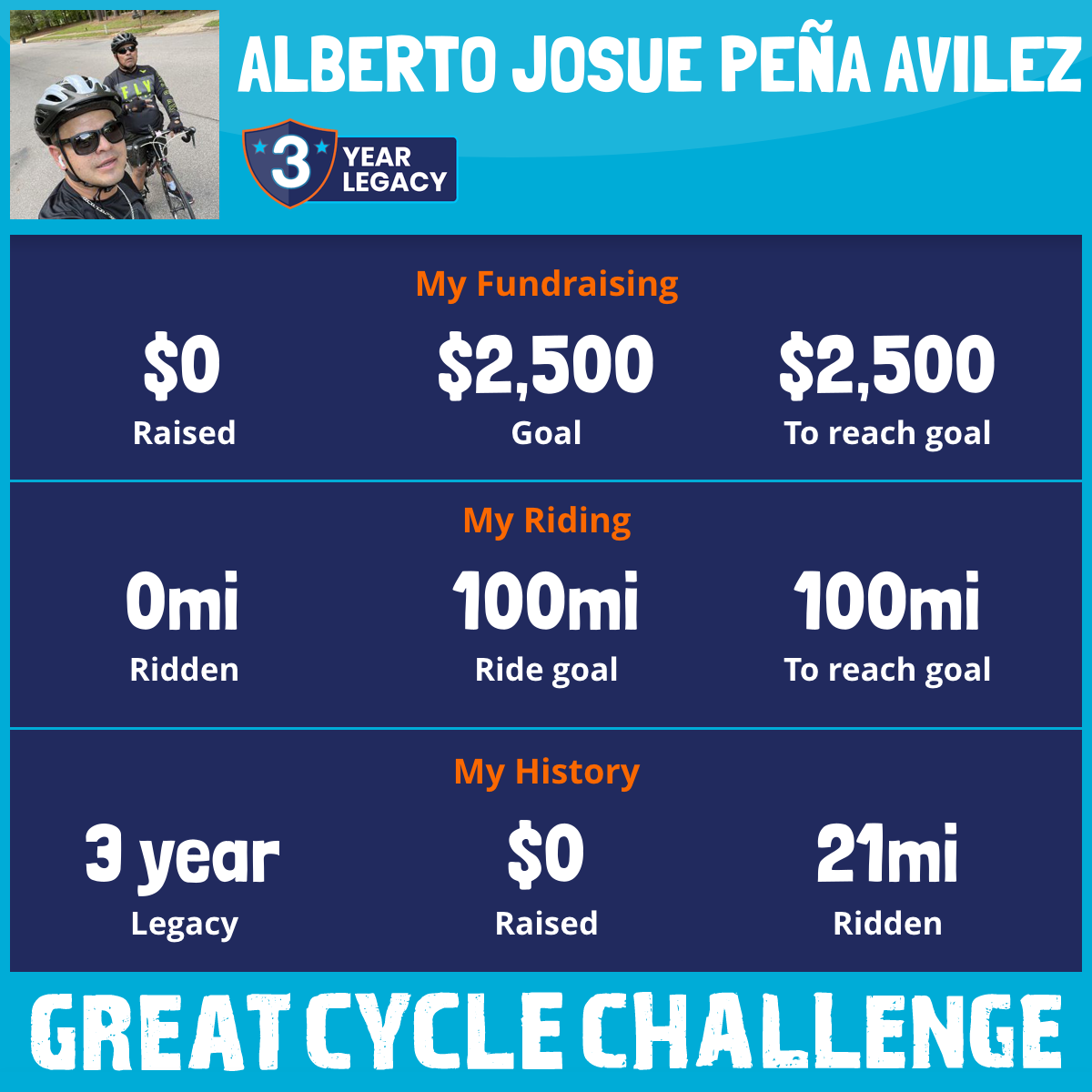 I've raised $0 My goal is $2,500 Donate Now