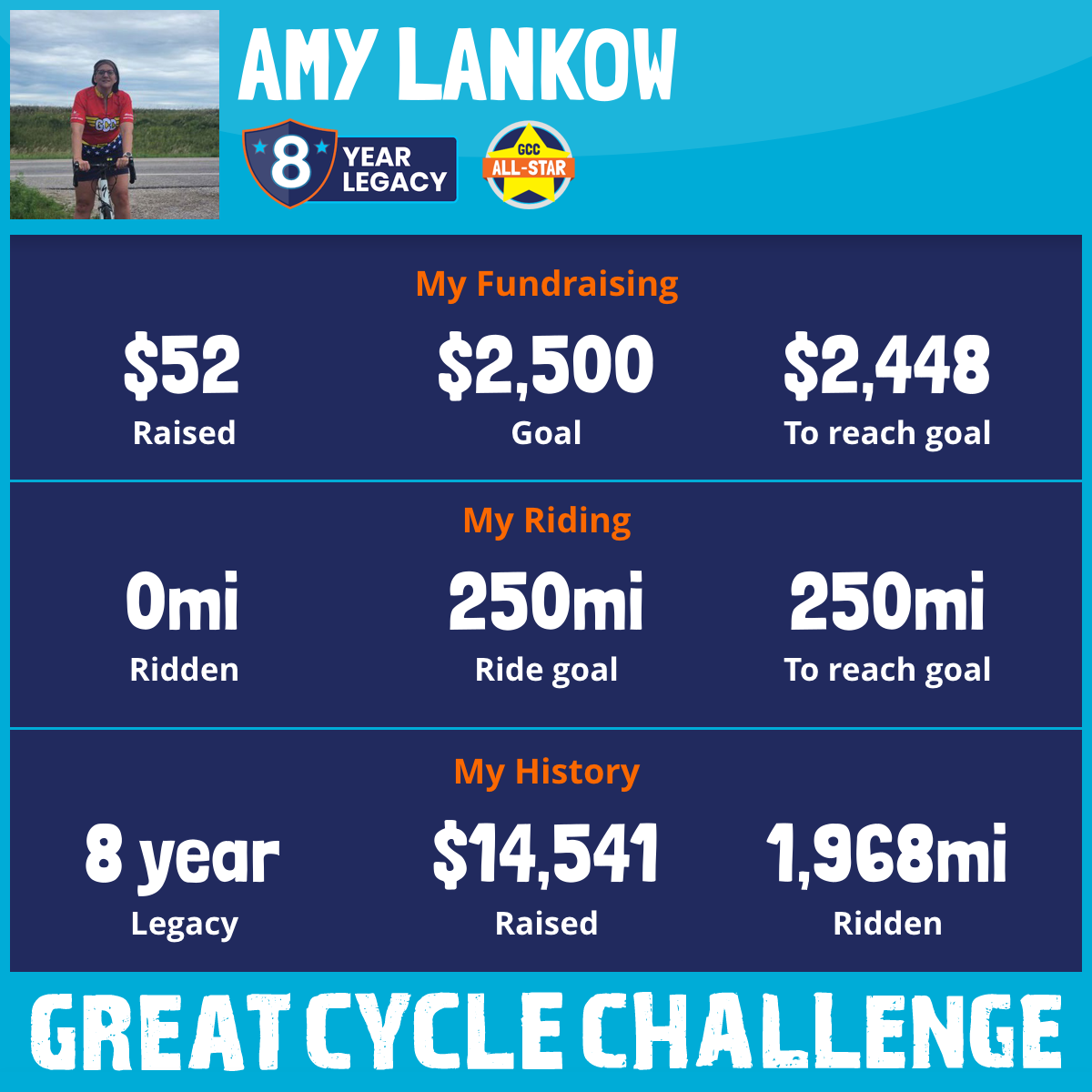 I am riding in honor of Dominic. Dominic is our superman who just went through a Bone Marrow Transplant to fight Acute Myeloid Leukemia. I am riding in memory of my husband Nate who was the biggest kid at heart. Nate died in 2021 from Colon Cancer metastasized to his liver and lungs.