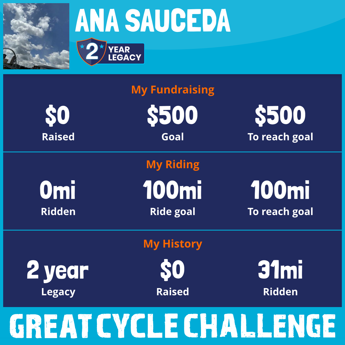 I am riding 100 mi for Jaime. Please sponsor me and support my challenge to fight kids' cancer and save little lives.
