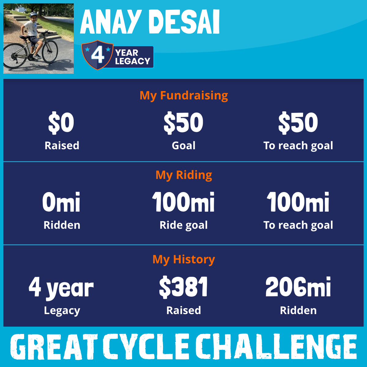 I will be cycling 100+ miles to support the fight against cancer and help save young lives. This cause is deeply meaningful to me, and I am reaching out to ask for your support. Together, we can make a lasting impact!!