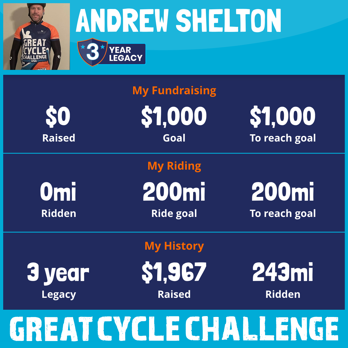 I am riding 200 mi to fight kids' cancer and save little lives. Please sponsor me to support my challenge!