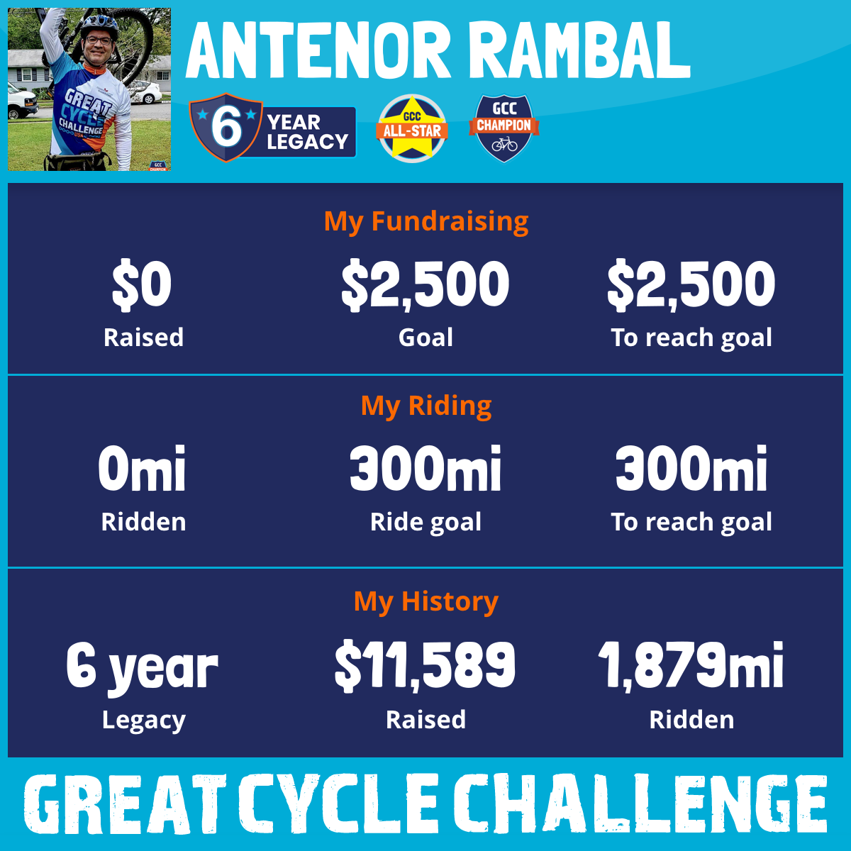 My personal goal is to ride over 300 miles and raise $3,000 throughout the month of September.