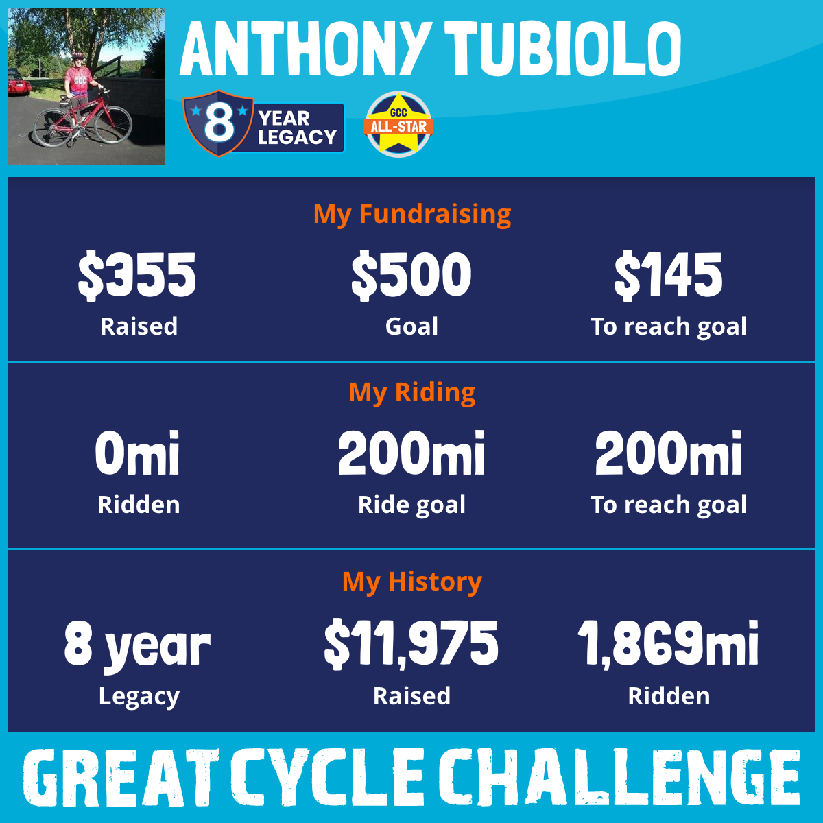 300 mi Ridden$1,496 Raised2022