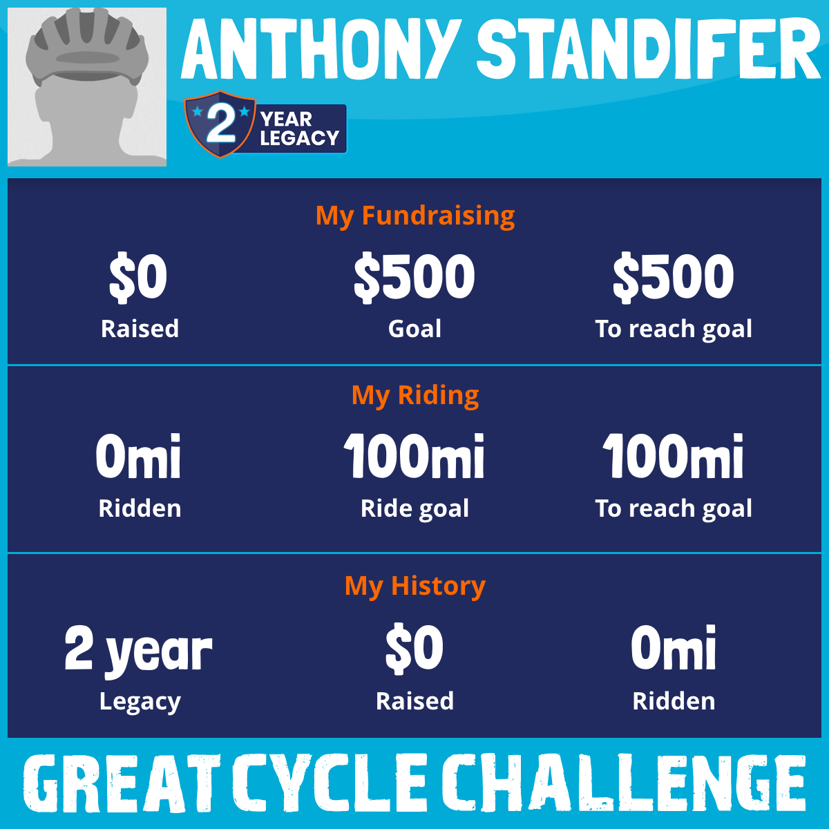 I am riding 100 mi for Ladell Standifer. Please sponsor me and support my challenge to fight kids' cancer and save little lives.