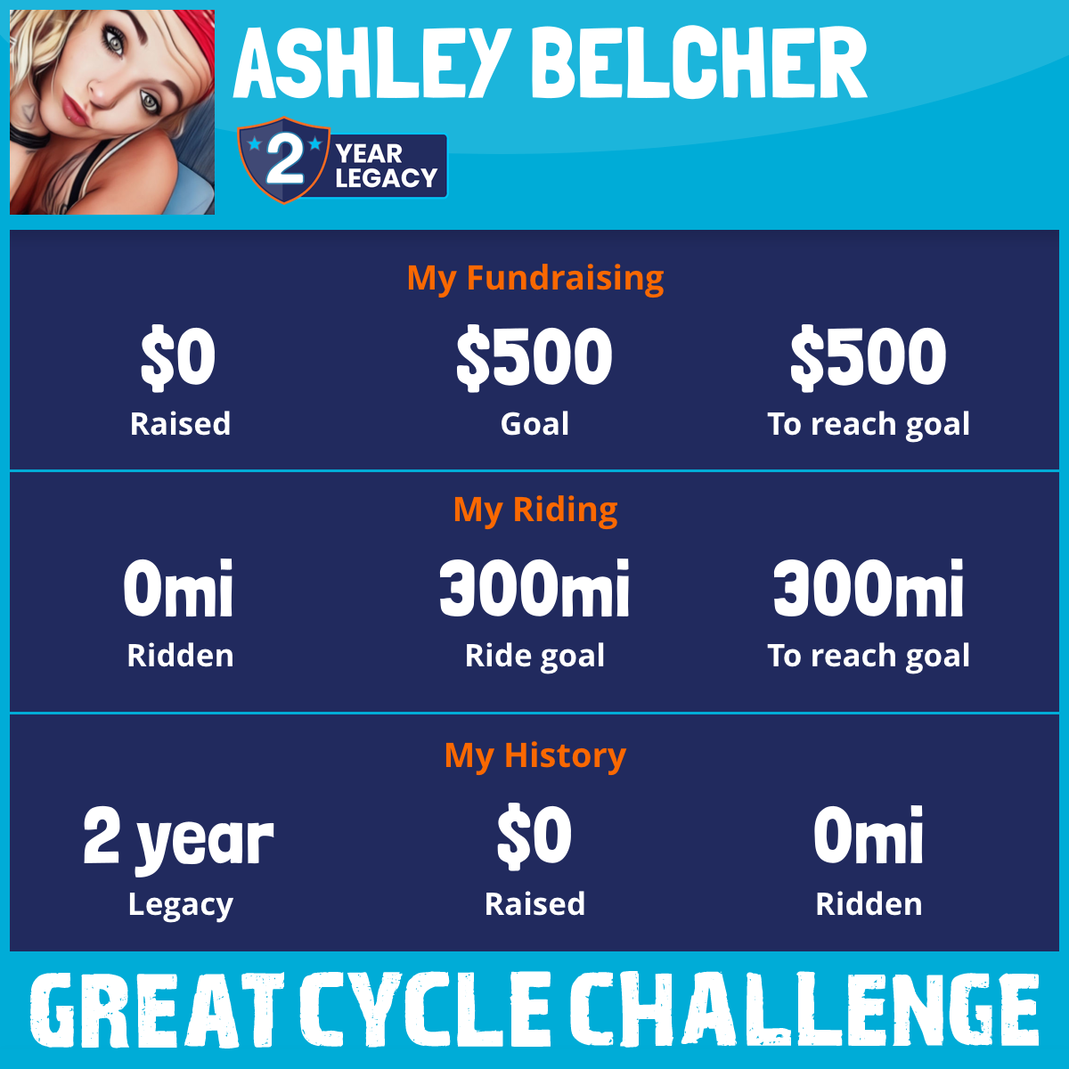 I am riding 300 mi in memory of Grandpa Gary. Please sponsor me and support my challenge to fight kids' cancer and save little lives.