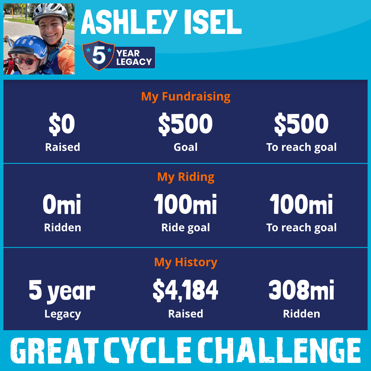 I am riding 100 mi for All the Kids. Please sponsor me and support my challenge to fight kids' cancer and save little lives.
