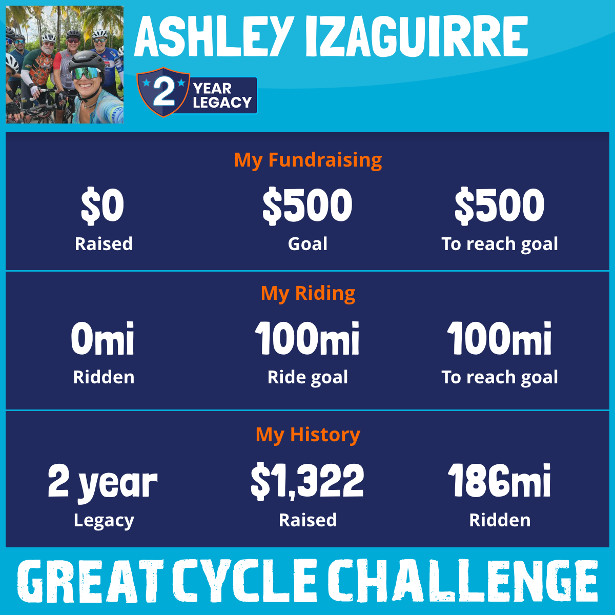 186 mi Ridden$1,322 Raised2024