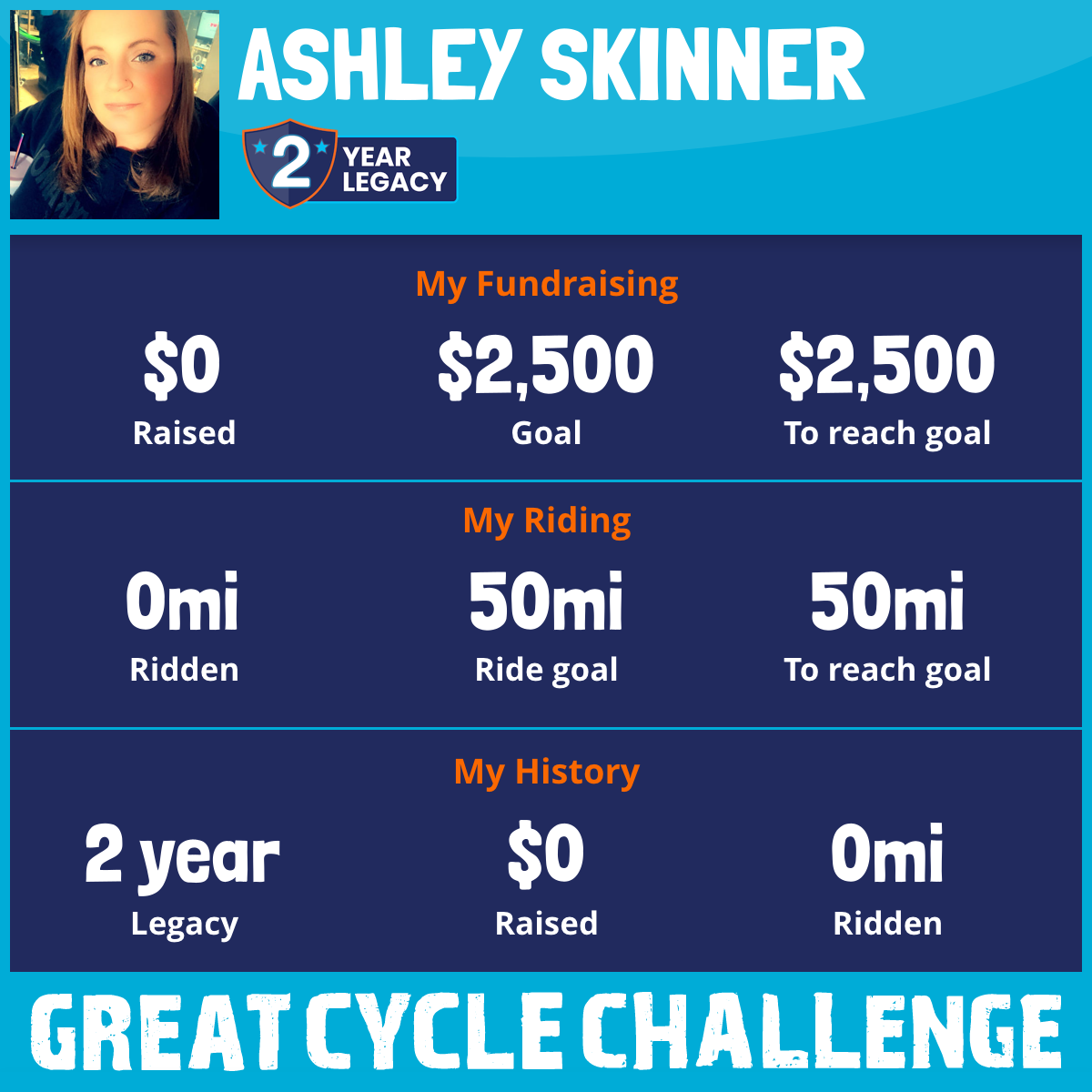 I am riding 50 mi in memory of my dad, William skinner. Please sponsor me and support my challenge to fight kids' cancer and save little lives.