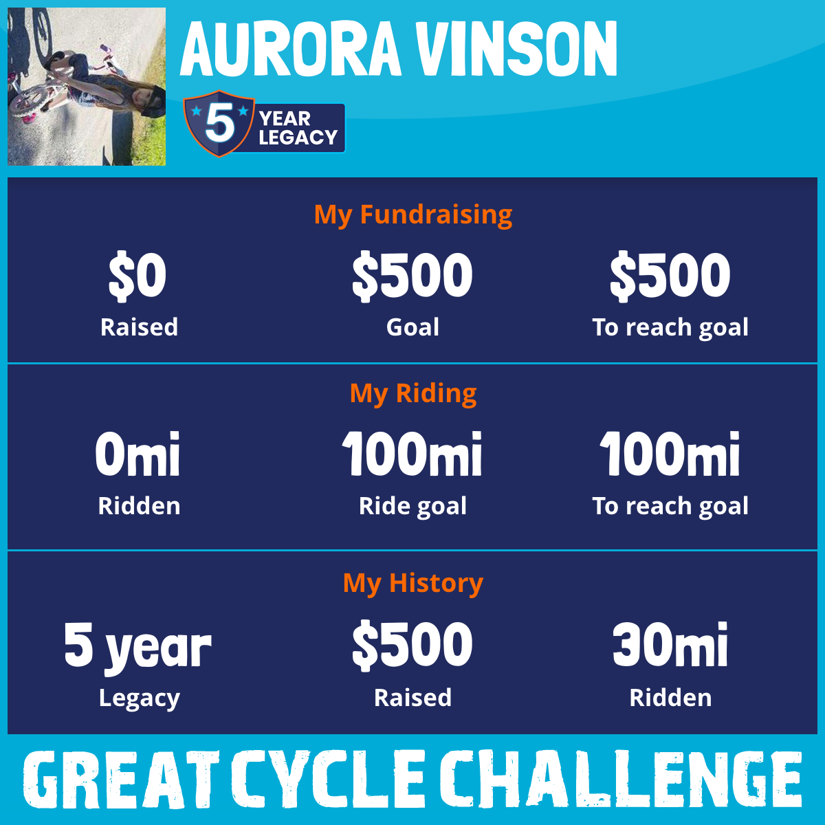 I am riding 100 mi in memory of Malia Smith. Please sponsor me and support my challenge to fight kids' cancer and save little lives.