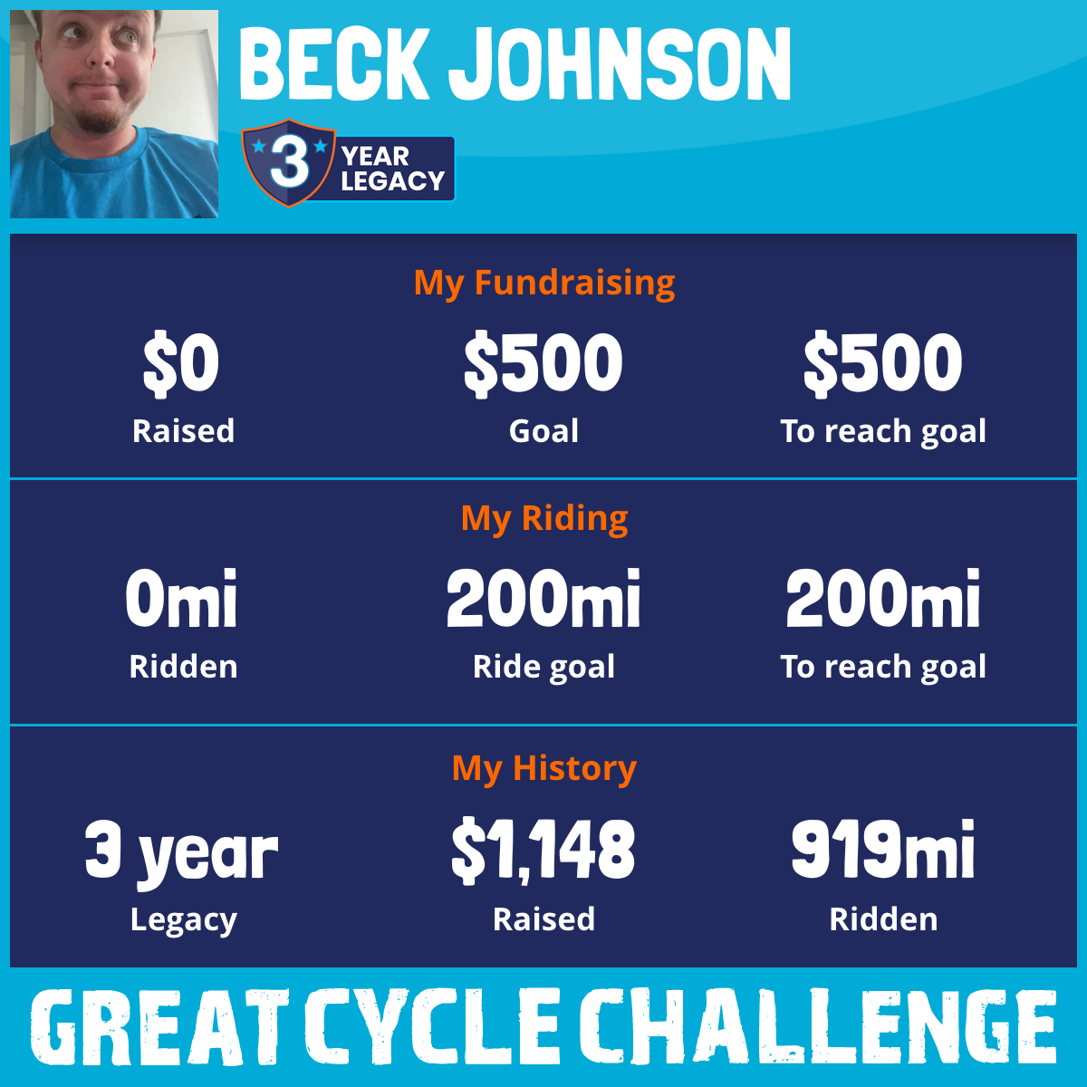 I am riding 39 mi in memory of Benjamin Ray Johnson. Please sponsor me and support my challenge to fight kids' cancer and save little lives.