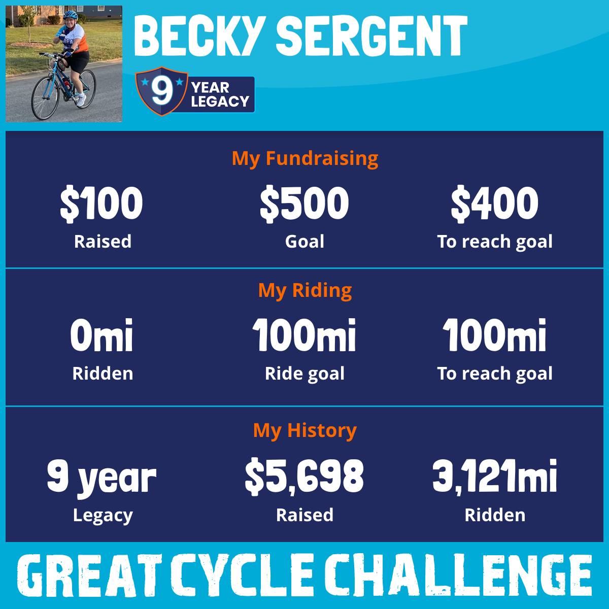 422 mi Ridden$1,050 Raised2021
