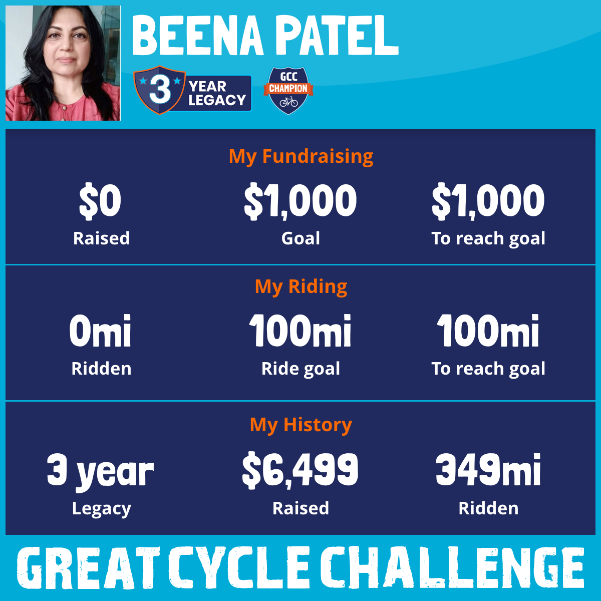 Most of us have seen cancer impact our lives and families in some way, but you are never quite prepared to hear that diagnosis for someone you love. The news really shook our family when my sister, Rupal Patel diagnosed in 2023 with Uterine sarcoma which was metastasised in lungs and spine. In September 2023, in memory of Rupal Patel, I rode 216 miles cycle and able to raise $3766 with your help for children’s cancer research to provide critical funding to the best and brightest research investigators! I understood the fear and uncertainty that so many families face in those moments. A lung cancer diagnosis can be even more shocking when my best friend Renuka was diagnosed with non-small cell lung cancer in 2024, she is EGFR positive and having her targeted therapy since last one year. Her dieses is totally under controlled, however, she must continue this costliest therapy for few more years. This September 2025, I will be riding to continue to increase funding to support not only Renuka’s fight to combat her disease but also to support kids’ cancer treatment. Riding cycle for fund raising is my way to motivate myself to support cancer affected patients and their families morally so as they stay positive and fight the battle. Do support my initiative by generous funding for Children’s Cancer research! My prayers and wishes are always with Cancer patients and their families for speedy recovery!