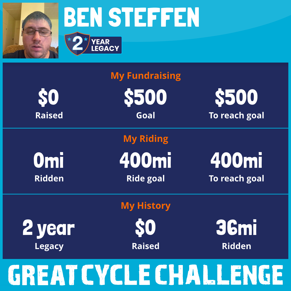 I've raised $0 My goal is $500 Donate Now