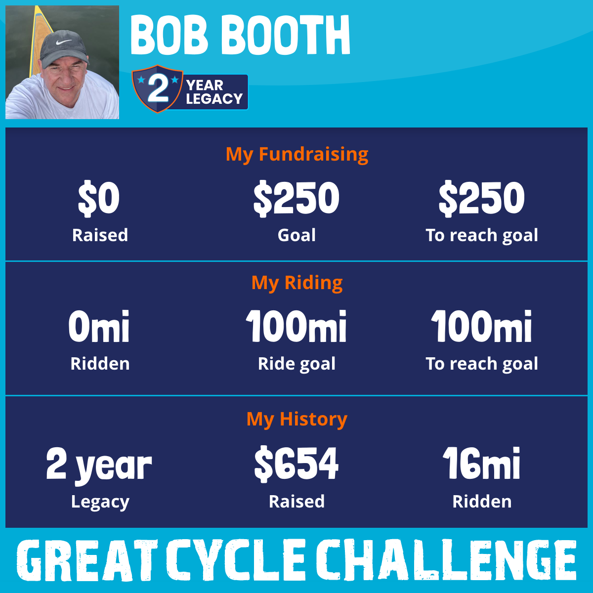 Here's the link to my page: https://greatcyclechallenge.com/riders/BobBooth