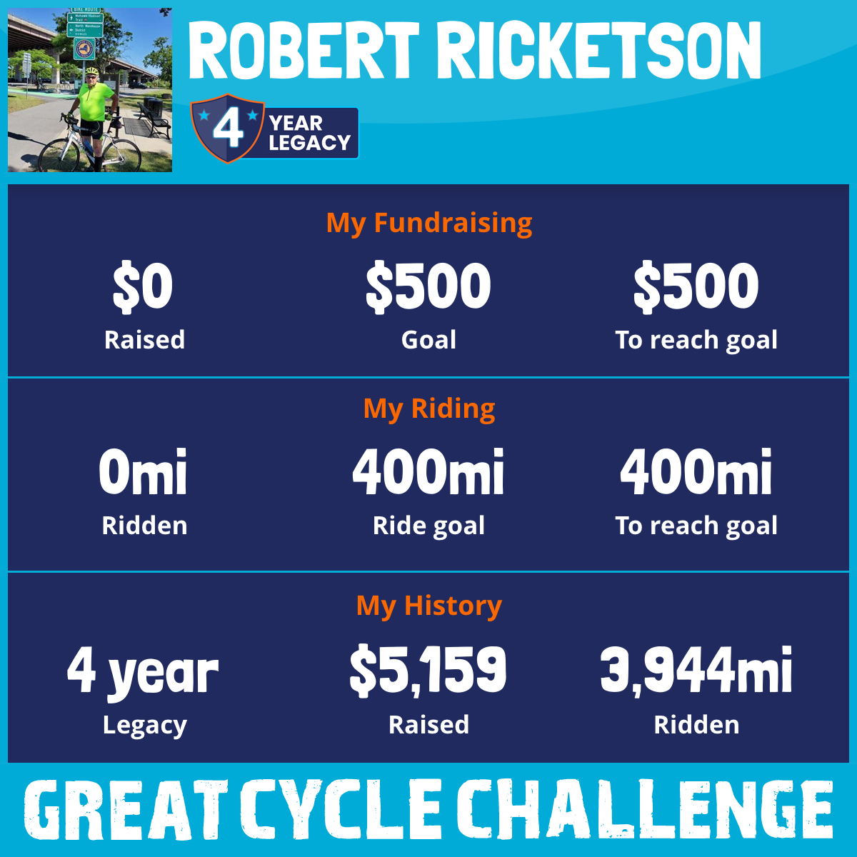 1,060 mi Ridden$2,143 Raised2025