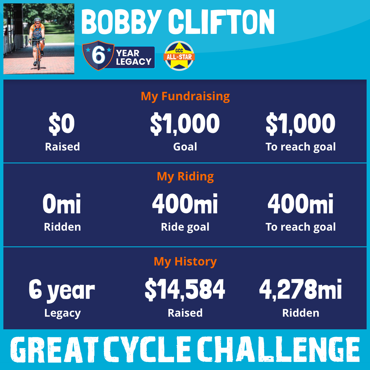 1,217 mi Ridden$5,607 Raised2026