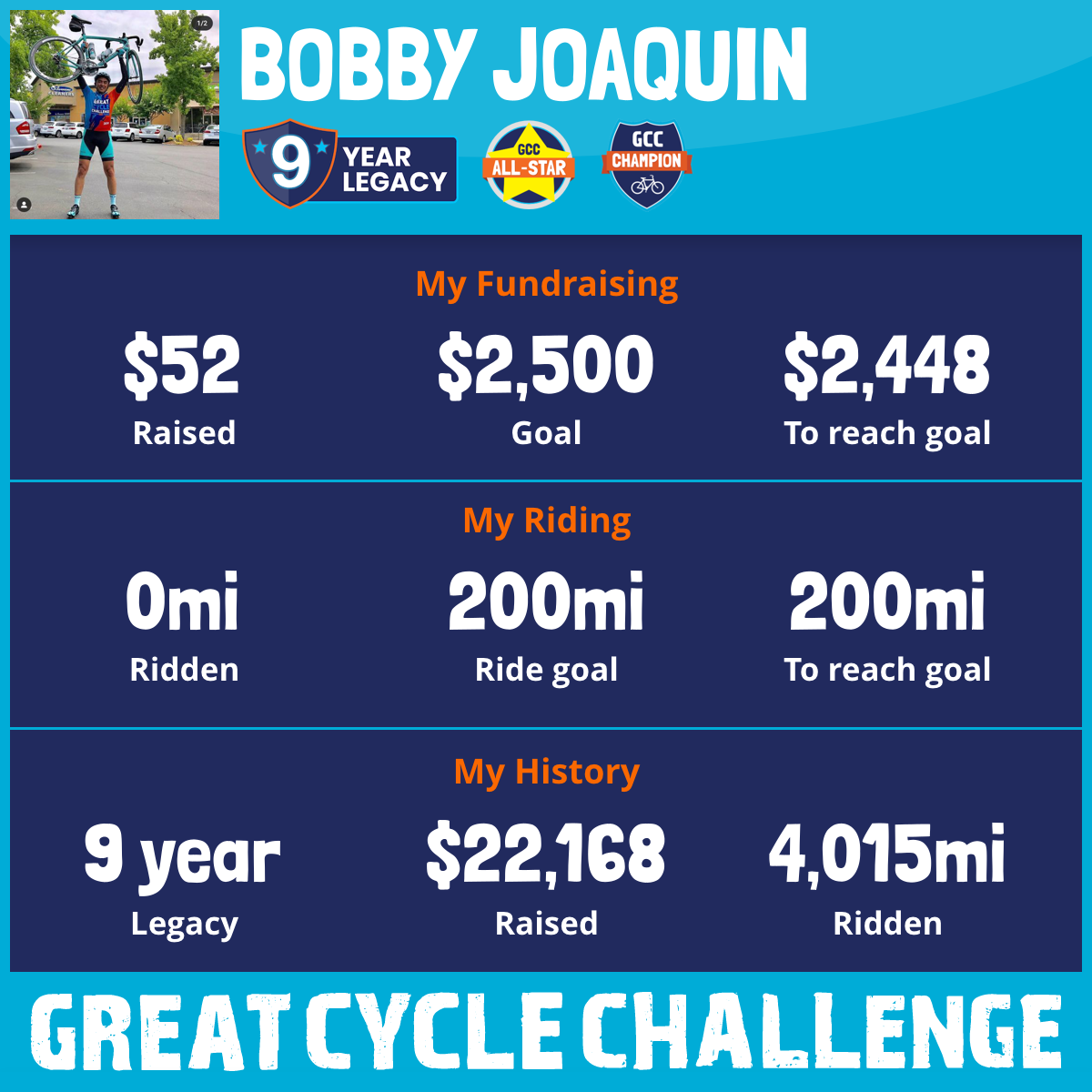 For the past eight years, I've been participating in the Great Cycle Challenge to fight kids' cancer and have enjoyed every time I've done it. It is not only very helpful but I've met so many amazing people and heard so many touching stories.