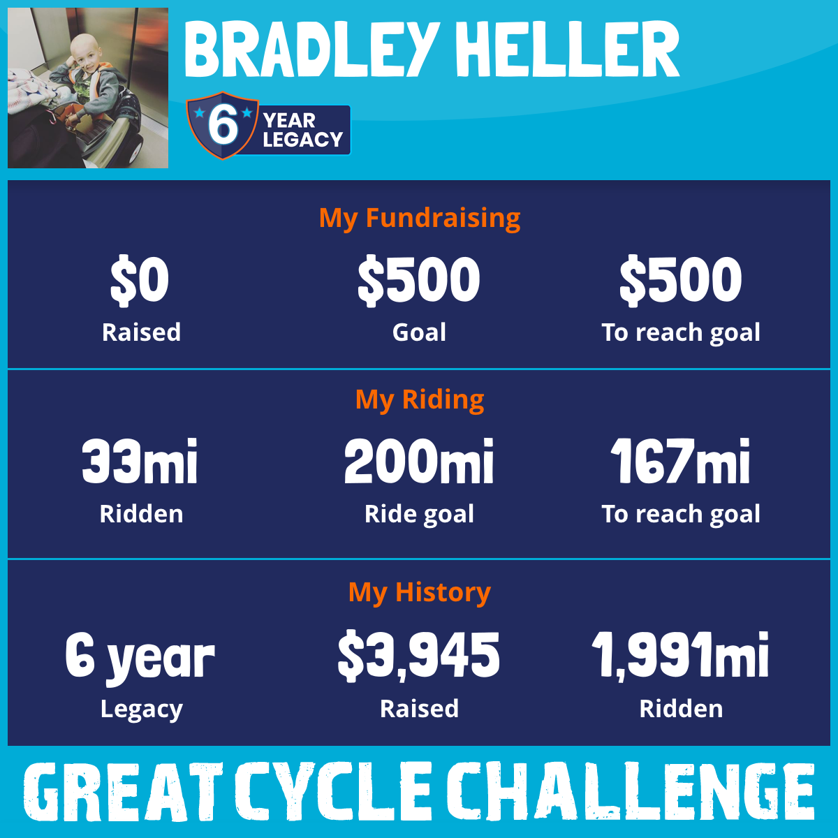 I am riding 200 mi in memory of Abel Alan Heller #Beezstrong. Please sponsor me and support my challenge to fight kids' cancer and save little lives.