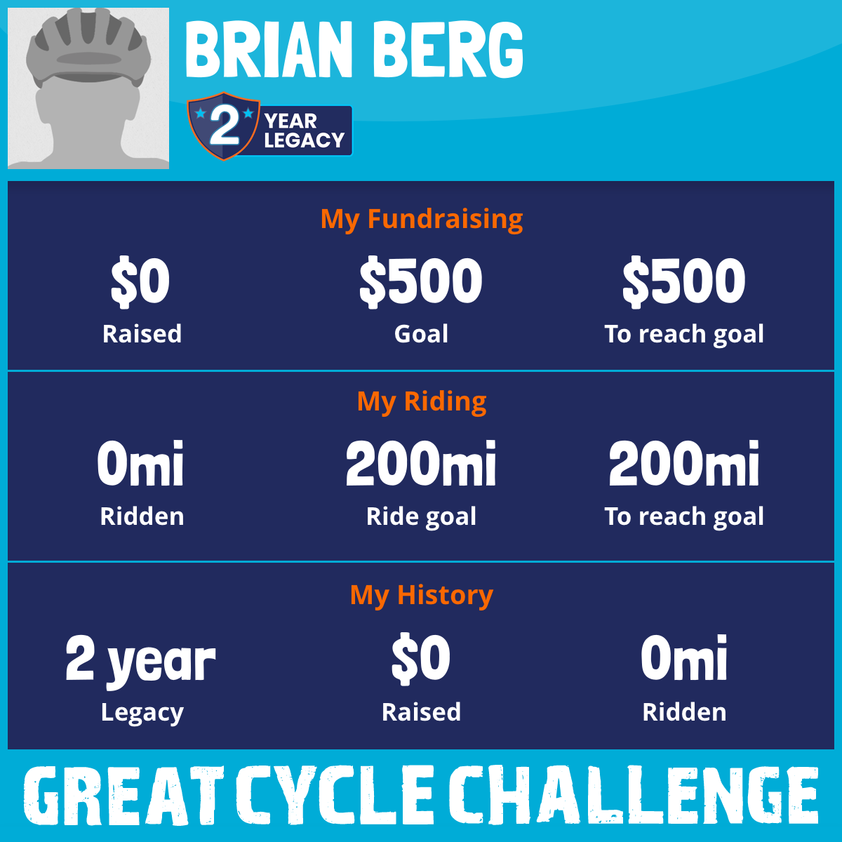 I am riding 200 mi for Brian. Please sponsor me and support my challenge to fight kids' cancer and save little lives.