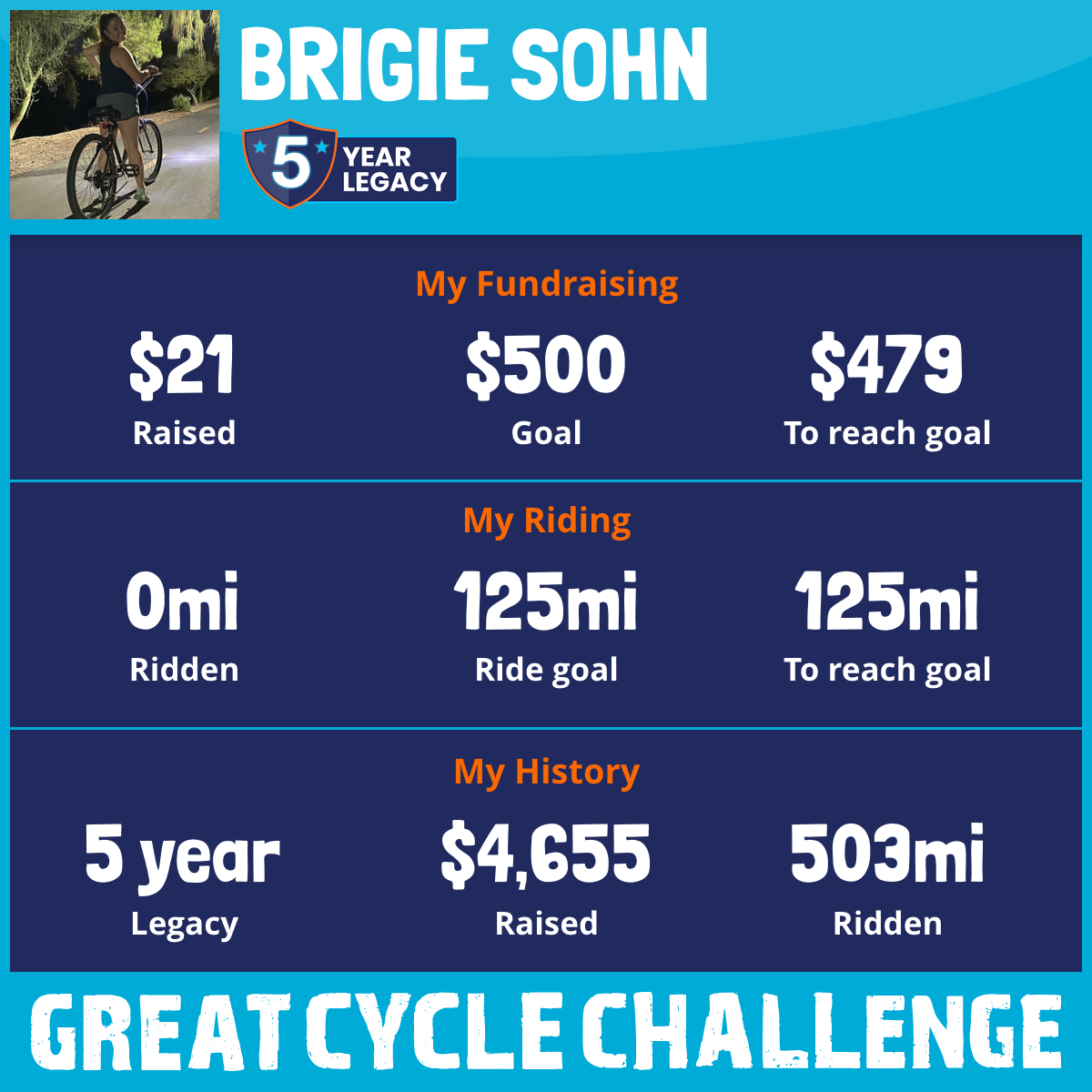125 mi Ridden$1,407 Raised2023