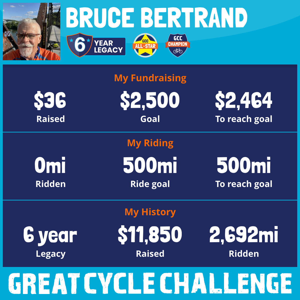 In the first four years, I’ve ridden over 3300 miles raised over $15,000.