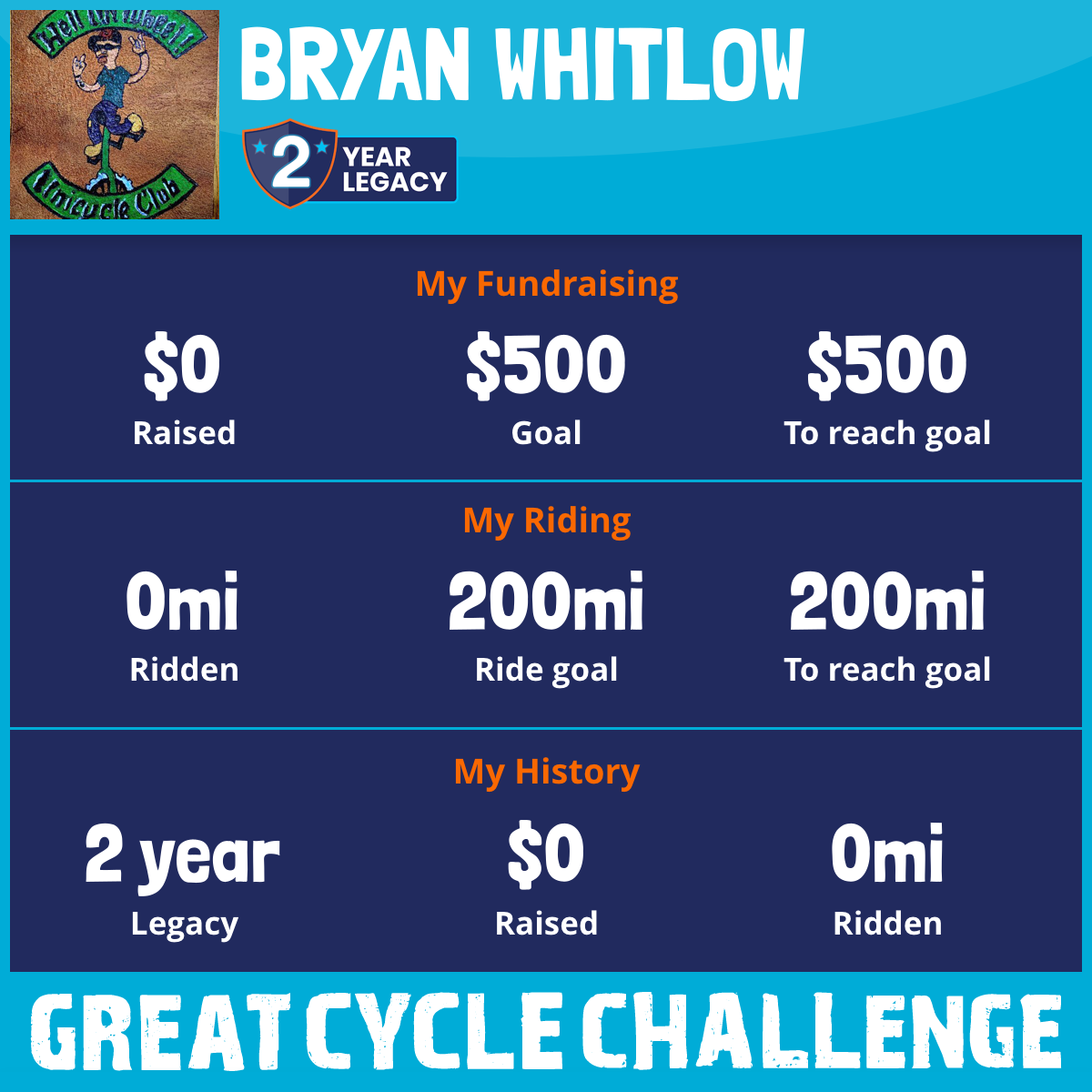 I am riding 200 mi for I’m riding for all who won’t be able to but in there heart want to. Please sponsor me and support my challenge to fight kids' cancer and save little lives.