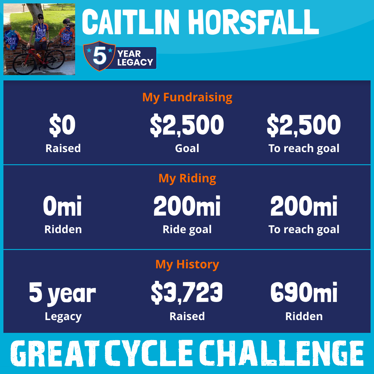 68 mi Ridden$1,495 Raised2023