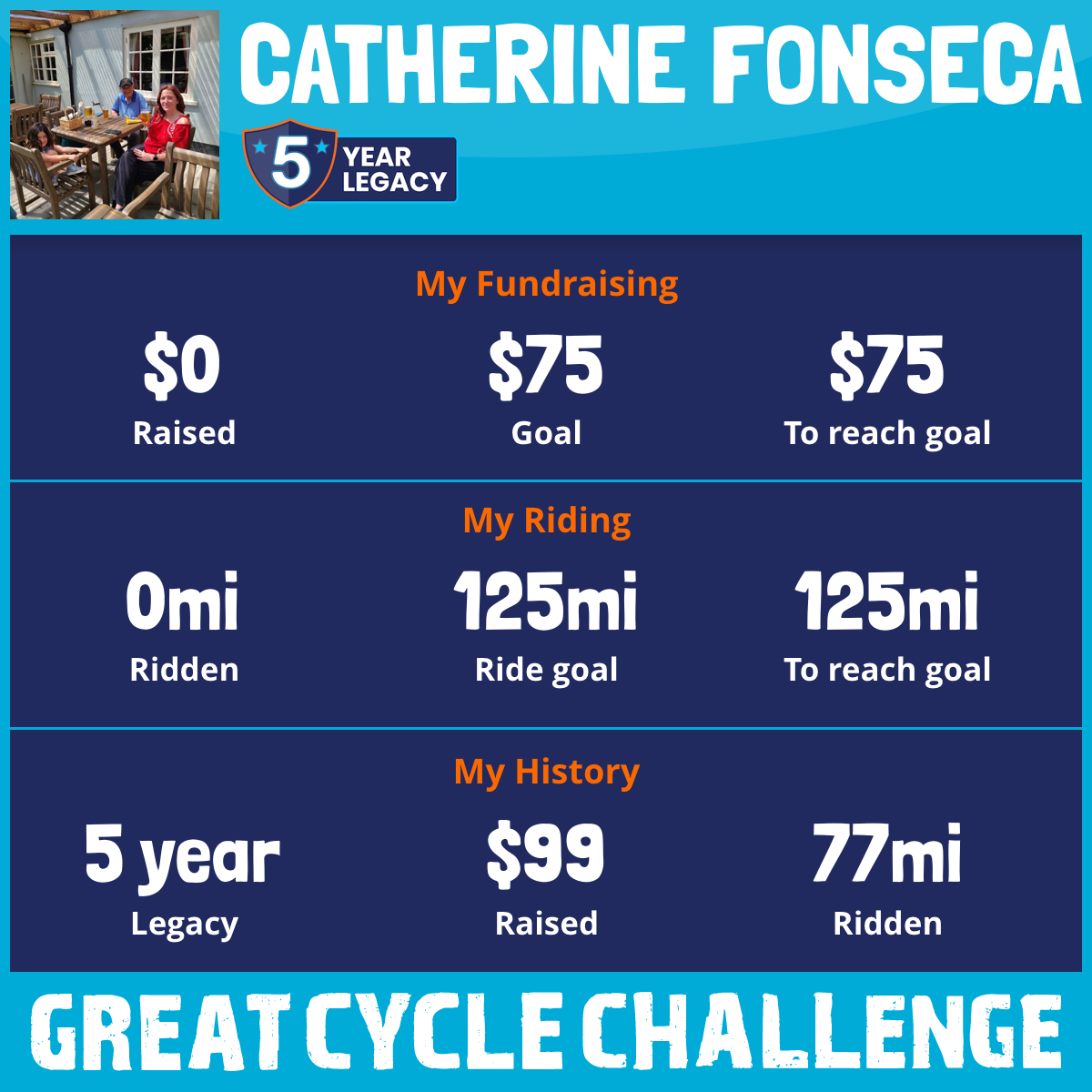 I am riding 125 mi to fight kids' cancer and save little lives. Please sponsor me to support my challenge!