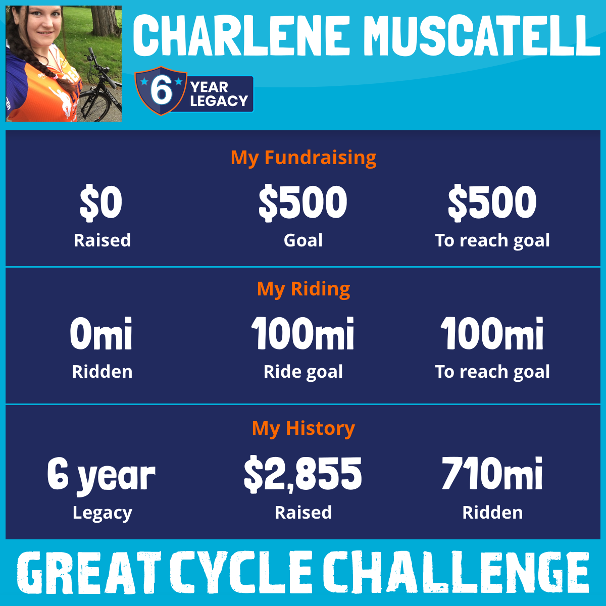 100 mi Ridden$1,069 Raised2017