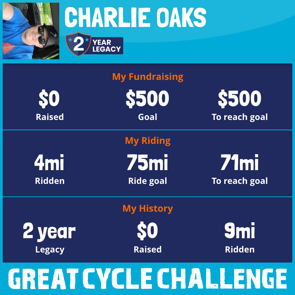 I am riding 75 mi for Gracelyn Oaks. Please sponsor me and support my challenge to fight kids' cancer and save little lives.