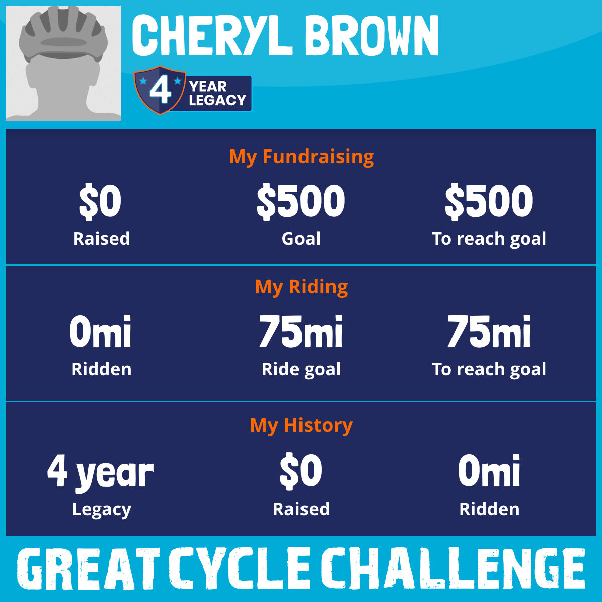 I am riding 75 mi in memory of All the kids with cancer. Please sponsor me and support my challenge to fight kids' cancer and save little lives.