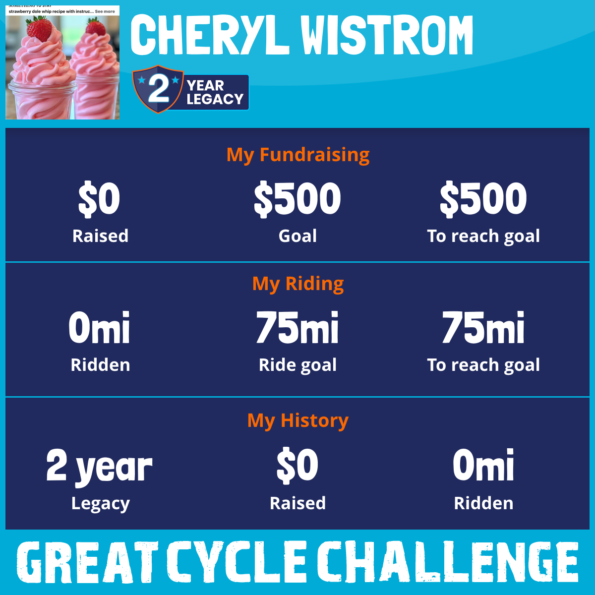I am riding 75 mi to fight kids' cancer and save little lives. Please sponsor me to support my challenge!