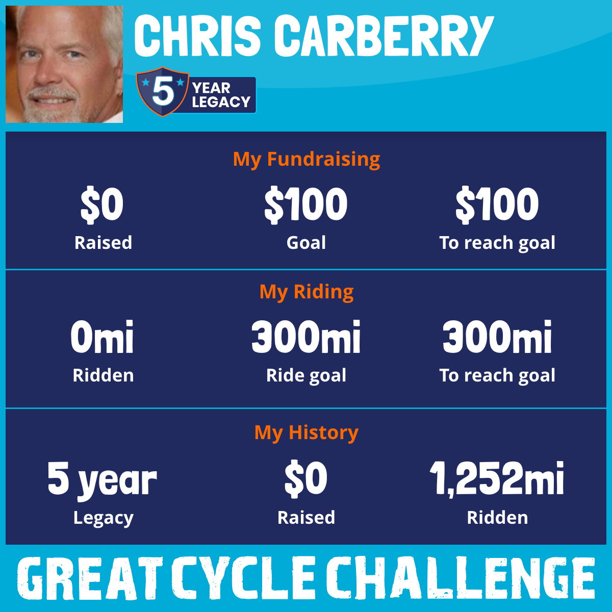 I am riding 300 mi in memory of Tim. Please sponsor me and support my challenge to fight kids' cancer and save little lives.