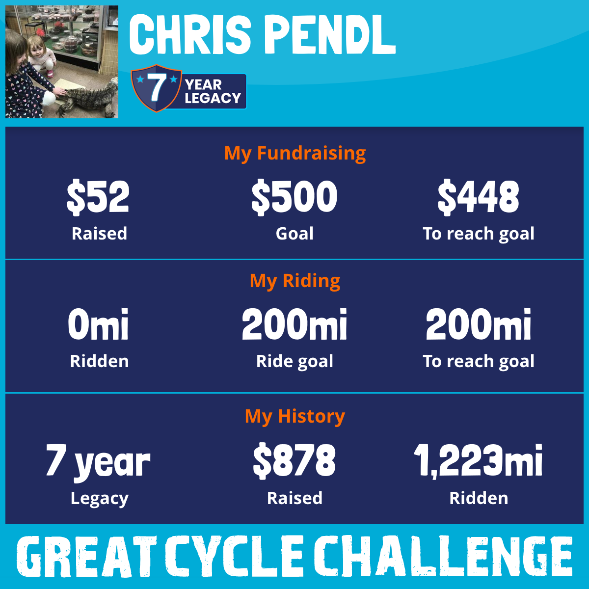 I am riding 200 mi to fight kids' cancer and save little lives. Please sponsor me to support my challenge!