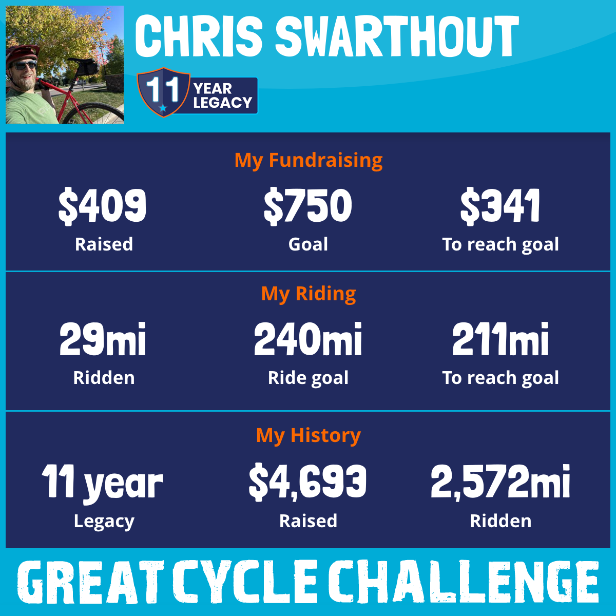 So I'm logging miles on the bike and also raising some funds through my challenge to help these kids and support Children's Cancer Research Fund to allow them to continue their work to develop lifesaving treatments and find a cure for childhood cancer.