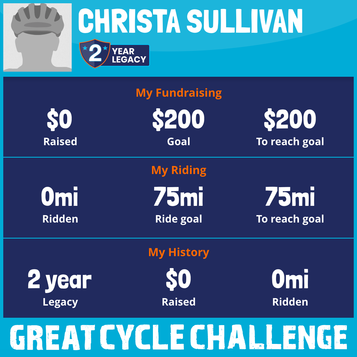 I am riding 75 mi to fight kids' cancer and save little lives. Please sponsor me to support my challenge!
