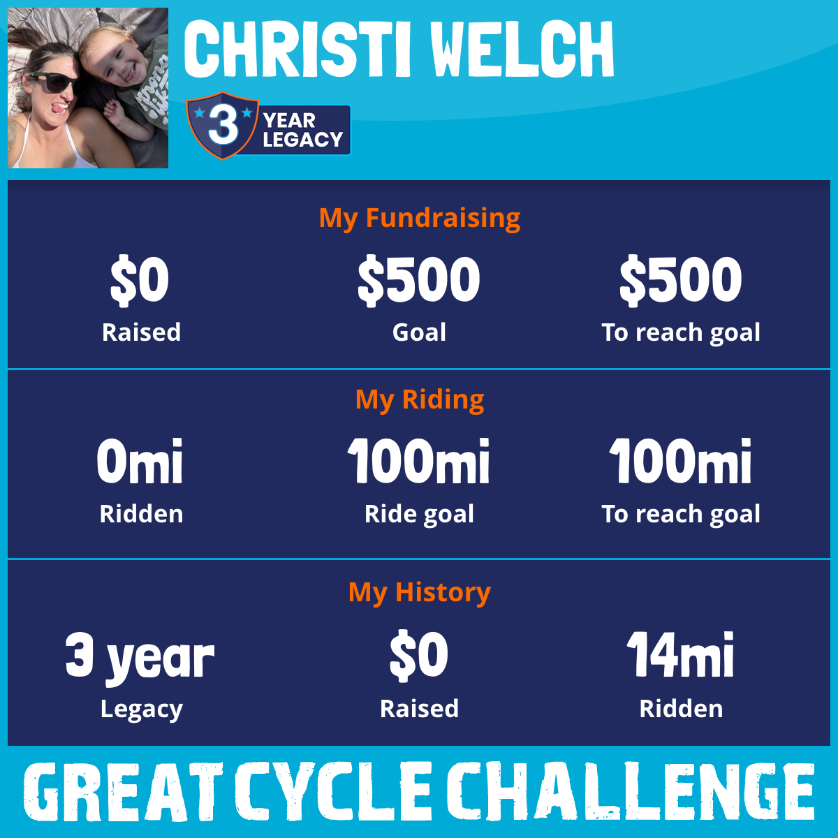 I am riding 100 mi to fight kids' cancer and save little lives. Please sponsor me to support my challenge!
