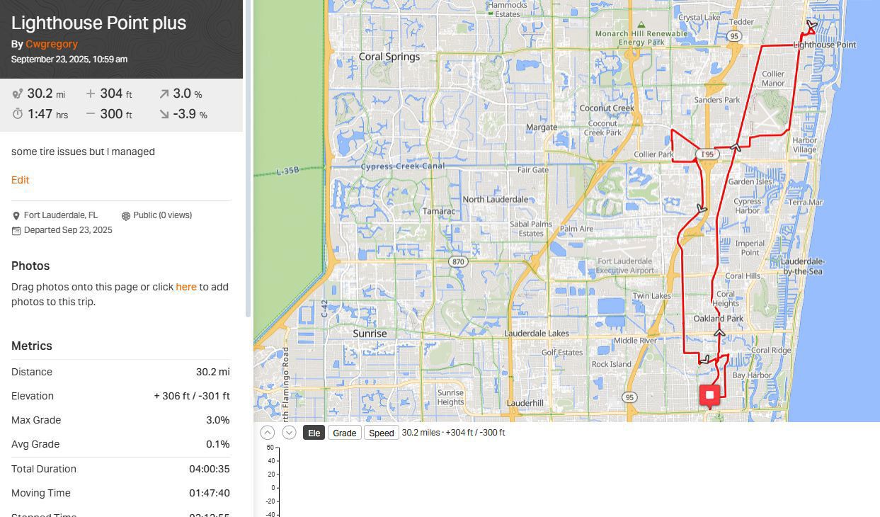30.2 mi ride - Lighthouse point again - Tuesday, September 23, 2025