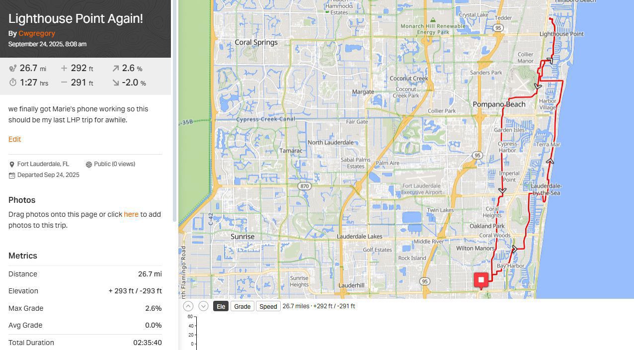 26.7 mi ride - Lighthouse Point - One More Time - Wednesday, September 24, 2025