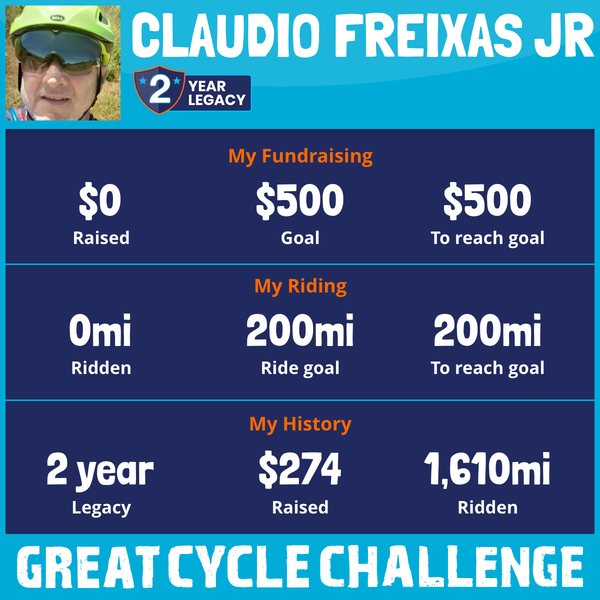 1,610 mi Ridden$274 Raised2020