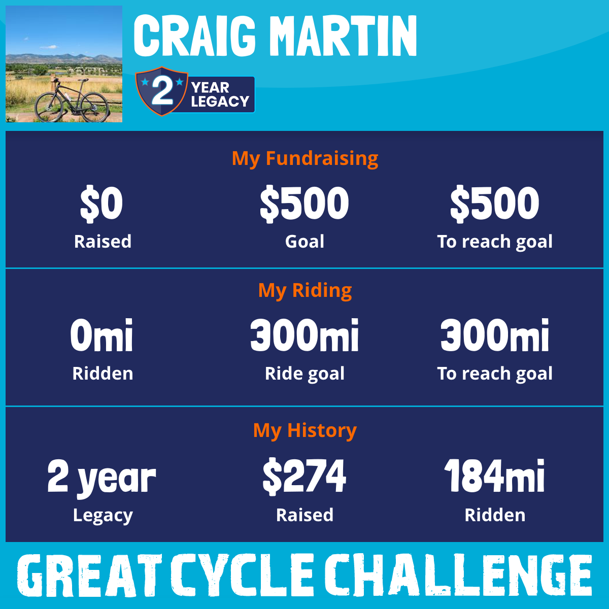 I am riding 300 mi to fight kids' cancer and save little lives. Please sponsor me to support my challenge!