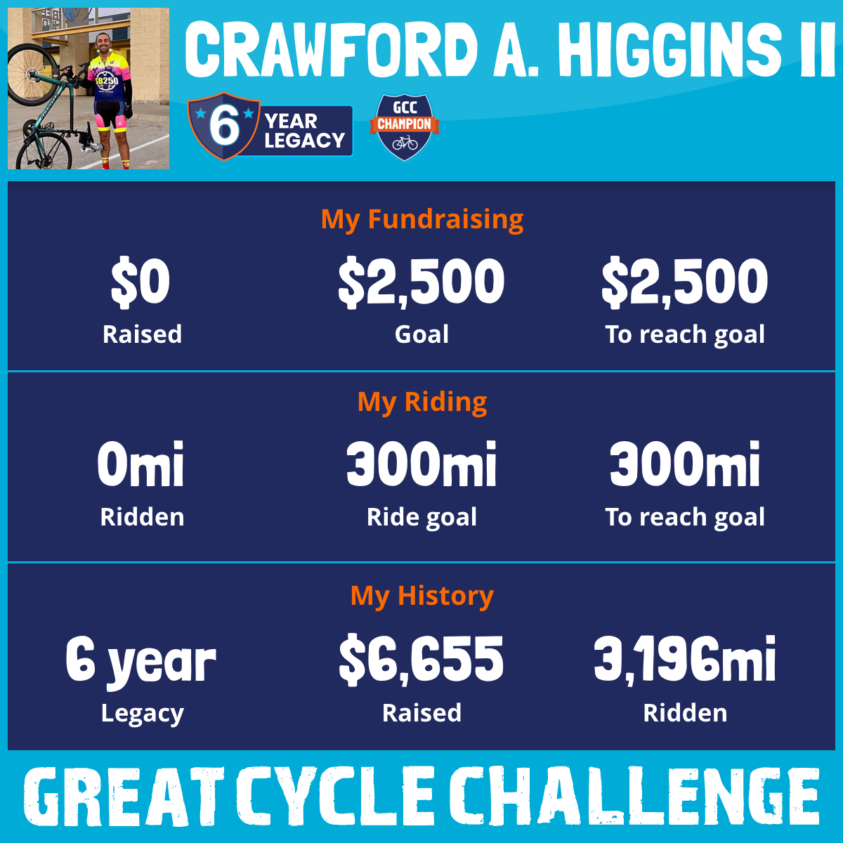 2,375 mi Ridden$3,113 Raised2020