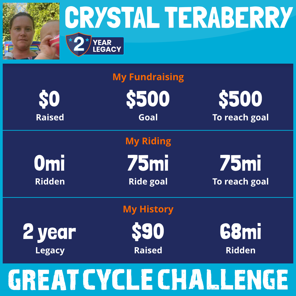 68 mi Ridden$90 Raised2021
