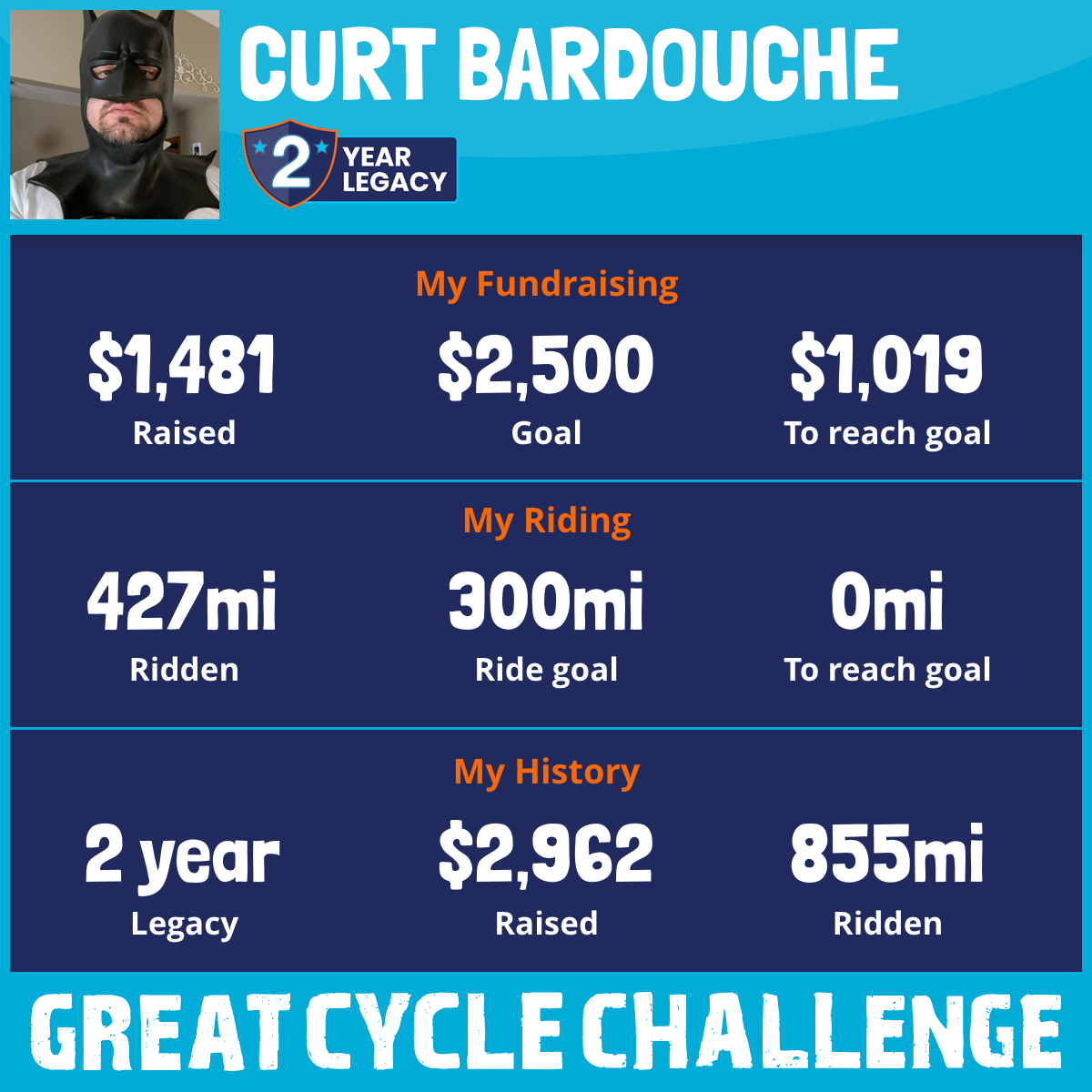 427 mi Ridden$1,481 Raised2026